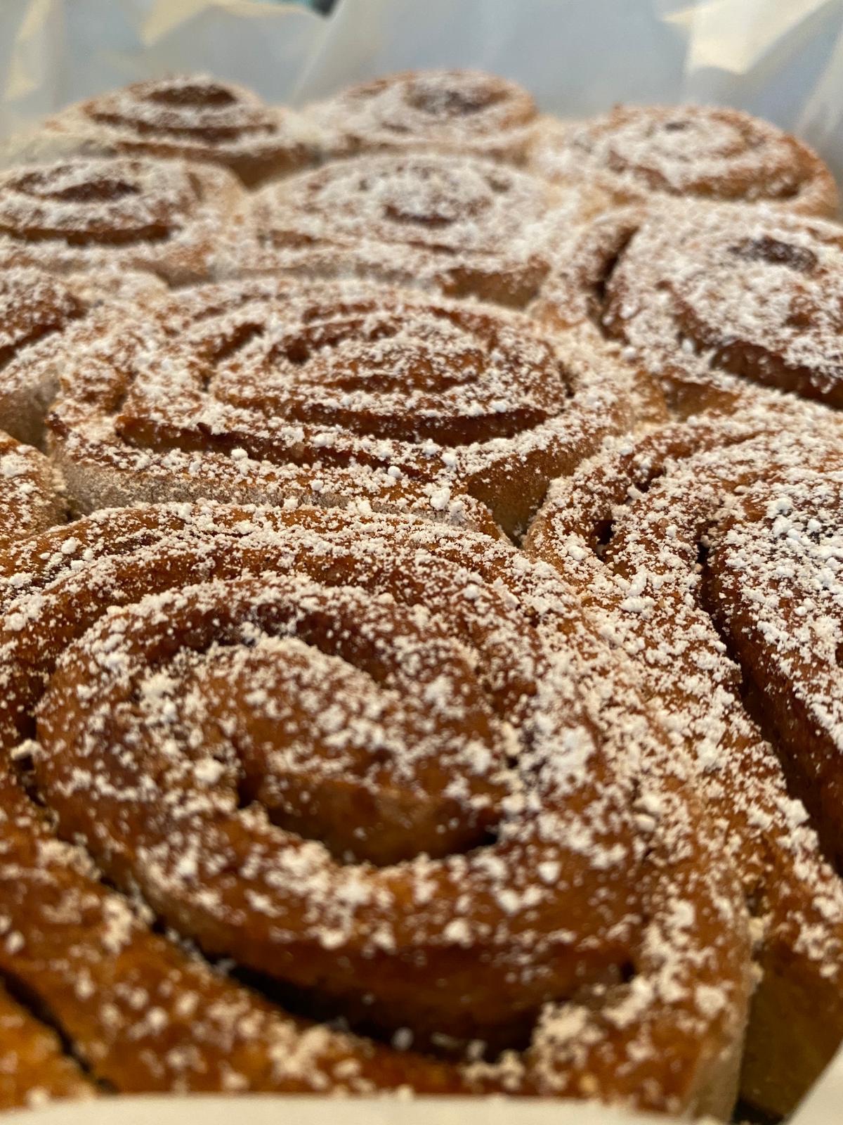 - Die Zimtschnecken aus dem Ofen nehmen und abkühlen lassen. Vor dem Servieren mit etwas Staubzucker bestreuen und genießen 🙂